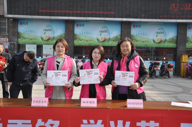 近日,周庄镇巾帼志愿者们在行政事业中心广场摆设了咨询服务台,把《婚姻法》、《反家庭暴力法》、《妇女权益保障法》等宣传折页送到过往群众手中,用“大白话”、“身边事”释理说法,引导广大妇女学法、守法、用法,切实维护自身合法权益,让文明家庭建设更具活力。
