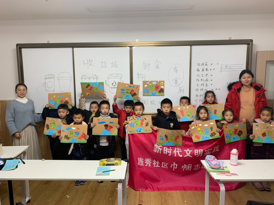 为普及垃圾分类的文化知识,为进一步培养小朋友们的垃圾分类意识,1月21日下午,青阳镇旌秀社区妇联联合凯尔文教育一起开展了“垃圾分类 从我做起”志愿者活动。