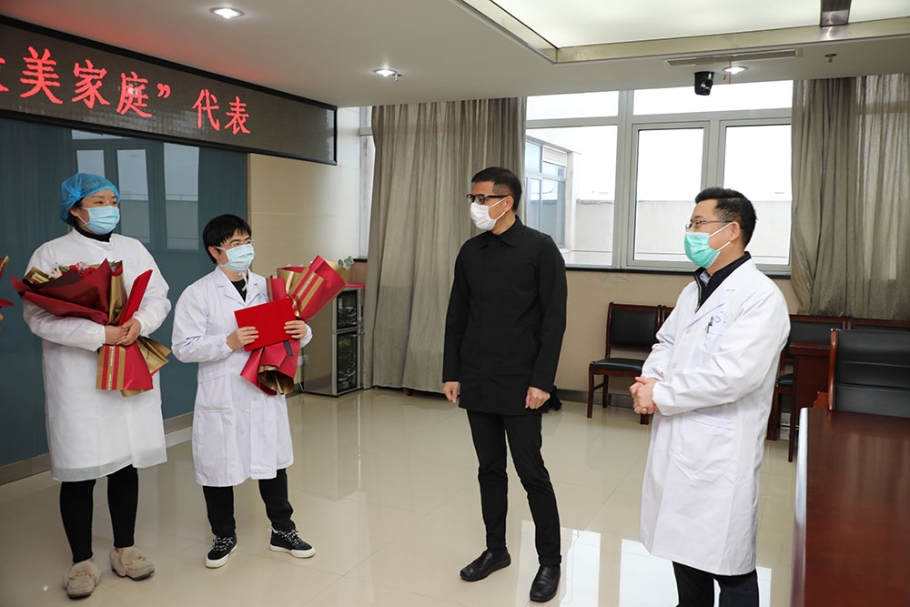 3月4日,华士镇党委书记陈峰、副书记程云、组织委员苏晓华、宣传委员殷妮代表镇党委亲切看望慰问了10户“最美家庭”代表,感谢他(她)们在这次新冠肺炎防疫战中无私无畏的奉献、辛勤辛苦的付出。