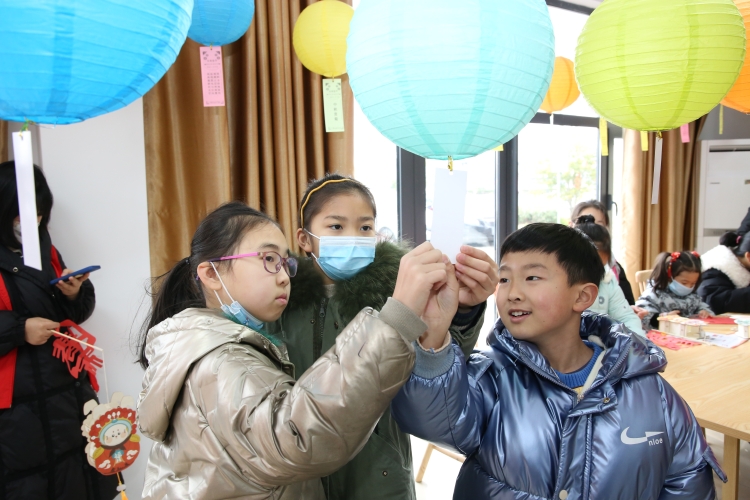 孩子们在家长的示范和指导下,开始制作五彩灯笼。折叠、粘贴,再系上亲手制作的流苏……孩子们积极地动起手来,通过组装、装饰等步骤,一个个灵活生动的元宵灯笼展现在大家眼前,孩子们的脸上也洋溢着幸福的笑容。